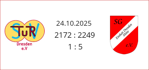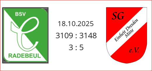 Zum ersten Heimspiel erwarteten wir die Sportfreunde von Turbine Dresden. Frank Schade bekam als Gegner Frank Teichmann. Es entwickelte sich ein sehr ausgeglichenes Spiel wobei jeder 2 Bahnen für sich entscheiden konnte. Unser Mann...
